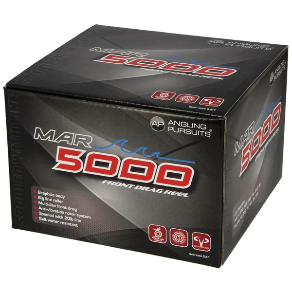 De Angling Pursuits MAR is een zeemolen die voorzien is van lijn. De molen heeft een grafieten lichaam en een anti-vibrerend rotorsysteem. Verder heeft deze molen een slip voorop en een gear ratio van 5,2:1. Dankzij de sterke 20lb rode lijn kan er direct gevist worden! Daarnaast kan de hendel aan beide kanten geplaatst worden. Dit model is verkrijgbaar in verschillende modellen!