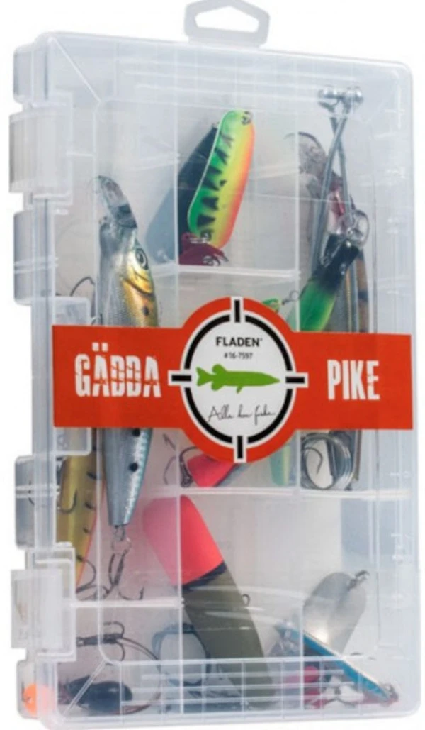 De Fladen Target Pike Box is een kunstaasset welke speciaal ontworpen is voor de visserij op snoek. Naast diverse type kunstaas beschikt de set eveneens over een doodaasdobber inclusief stalen onderlijn, gewichtjes en stuitjes, wat leidt tot een zeer complete set voor alle denkbare watertypen en omstandigheden! Alleen nog een lange onthaaktang, kniptang en onthaakmat benodigd om het eindeloze avontuur op de grootste snoeken te laten beginnen, uiteraard onder begeleiding van een ervaren visser!